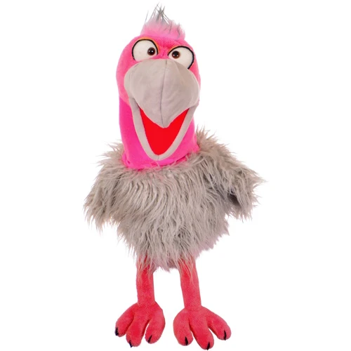 Heel grappig fantasie rijk giertje. Als ie zijn nek helemaal uitstrekt is ie wel 54 cm lang. Maar kan ook lekker met de nek helemaal naar beneden zijn pleziertje doen. Vrolijk, en grappig van Living Puppets.
