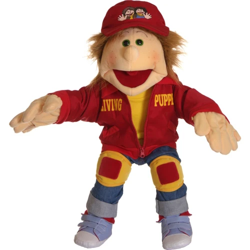 Loetje is een echte stoere skater. Helemaal compleet met pet, jack en jeans. Jack en jeans kunnen gewoon uit en vervangen worden. Ook heeft Loetje echte knie stukken, voor het geval ie misschien onderuit zou kunnen gaan. Goed bespeelbaar vanuit de nek en ook de handen kunnen gebruikt worden. Weer zo’n juweeltje uit de stal van Living Puppets.