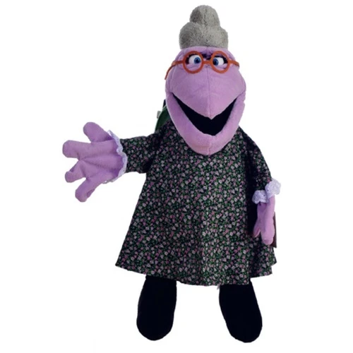 Niet zo maar een gewone oma. Dit is oma Slons uit de Wiwaldi familie. Om nou te zeggen dat het een schoonheid is, is wat overdreven. Flink hoofdje, maar met een vriendelijke uitstraling. Gewoon een hele vriendelijke oude dame, met wie iedereen het goed kan vinden. Zo’n 70 groot en uiteraard zeer goed en makkelijk bespeelbaar, leuk gemaakt door Living Puppets.